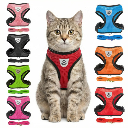 Harnais chat réglable et respirant + laisse offerte – Anti-fugue & confort