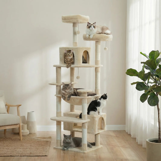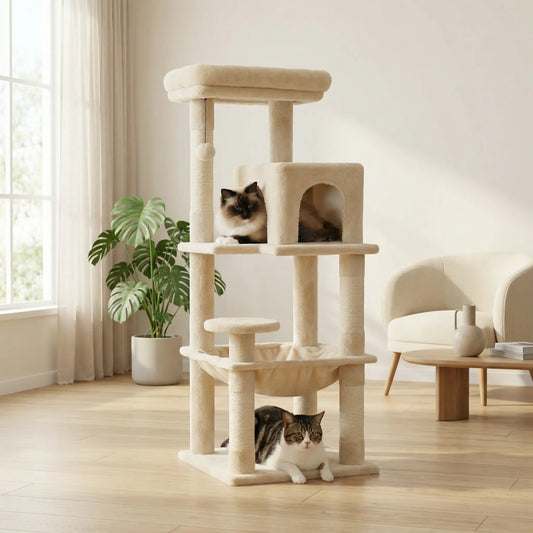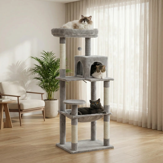 Arbre à Chat XXL Multi-Niveaux – Stable, 3 à 5 Chats, Poteaux en Sisal & Hamac